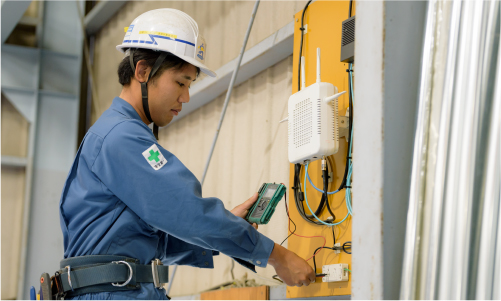現場によって大きく変わり、また内容も多岐に渡ります。一般住宅・商業施設等の配線や照明器具の取付。 工場の高圧電気設備の改修。道路照明のメンテナンス。また携帯基地局の業務にも携わっております。